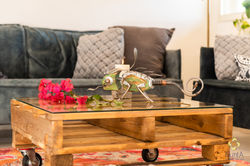 פרט ייחודי תוכנן ונבנה מצינורות מתכת בקטרים שונים ומשמש כשולחן קפה.