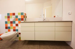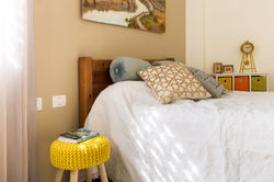 משפחה מיוחדת יצירתי מאוד וצעירה, בגילה ובאופייה עם שני בנים 4 ו-6 שובבים ושובי לב ביקשו שינוי. הבית נקנה ממשפחה שערכה בו שינויים מבניים, המטבח היה חדש, שירותי האורחים ו"המדרגה" בקיר הנמצא בהמשך למטבח הפריעו מאוד לבעלת הבית והיה צורך במקומות אחסון נוספים בחלל הציבורי ובממ"ד ששימש כחדר משחקים. נבחרה צבעוניות רעננה המתאימה לאופי המשפחה, תוכננה מערכת מדפים ומקום אחסון ל"מדרגה" שבקיר ובחדר המשחקים יצרנו מעין אוהל משחקים מתקפל ורב שימושי מלול תינוקות ישן הצמוד לקיר. שירותי האורחים שופצו ושמרנו על מסגרת תקציב שהוגדרה מראש.