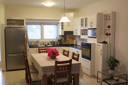 הדלת התכולה מוסיפה צבע עדין ומזמין. המטבח הבהיר – נותן תחושה של מרחב.
